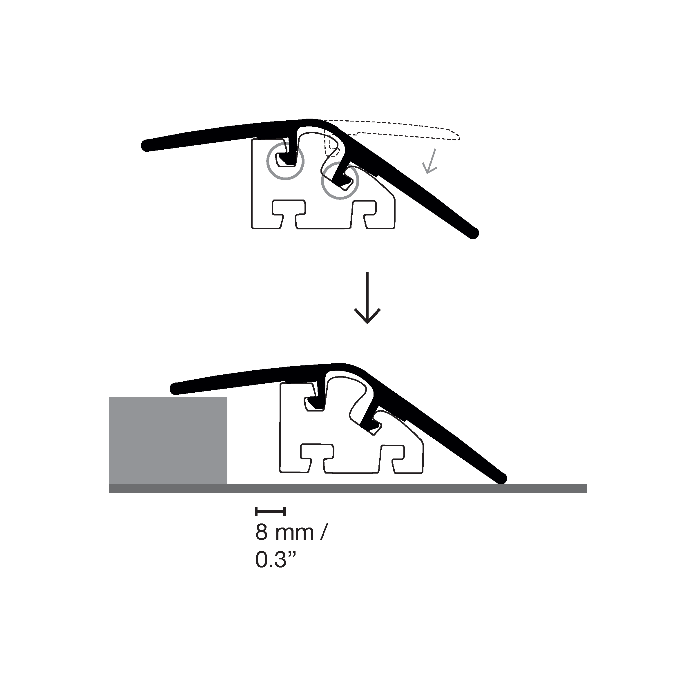 One single, simple molding solution for t-molds, reducers, and end caps. Made from durable, waterproof PVC for long-lasting performance, and available in all LifeProtect 2.0 colors for a seamless match.